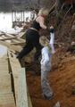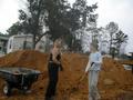 This is the first two loads of dirt for the backfill. We moved about 1/2 of 1 load (3.5 yards) with the wheelbarrow.