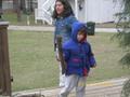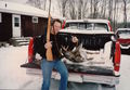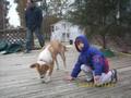 This is at Allen and Diane Johnson's home. Joe, Goober, buck, deer |