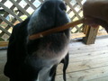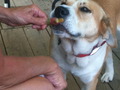 Eating a popsisle Butch, dog |